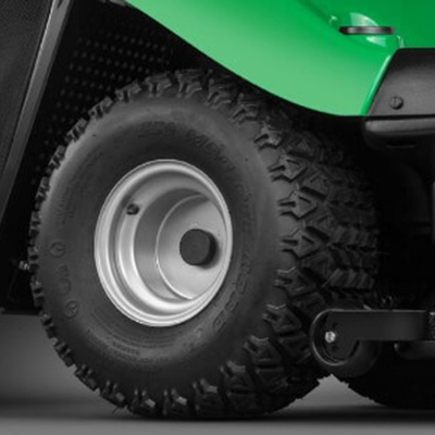 - Машина CAIMAN Comodo оснащена широкими дерновыми колесами. Они разработаны, чтобы максимально уменьшить воздействие на покрытие. Большая площадь касания снижает давление на грунт, а специальный рисунок протектора снижает риск повреждения деликатного газона.