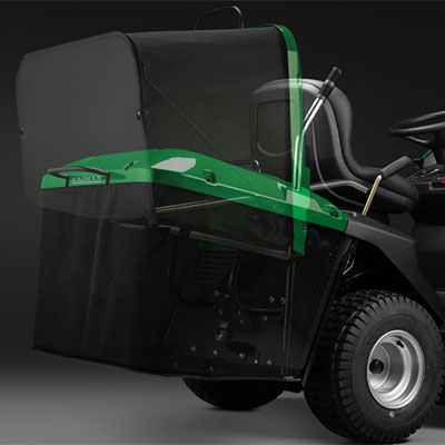 - Травосборник емкостью 300 литров снабжен рычагом подъема, который облегчает выгрузку скошенной травы. Изготовлен из износостойкого полимера, который хорошо пропускает воздух и гарантирует эффективный сбор травы.