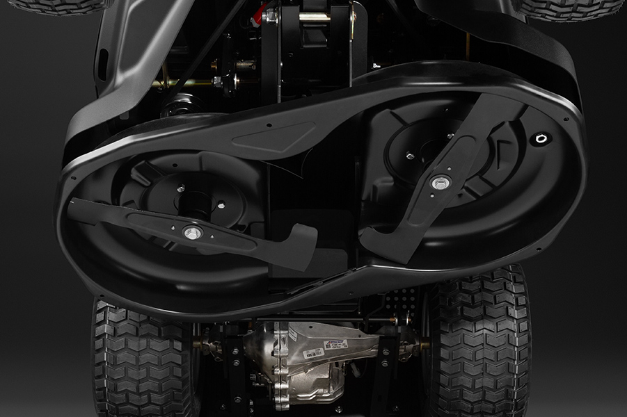- Конструкция деки исключает образование участков нескошенной травы даже при маневрировании машины.