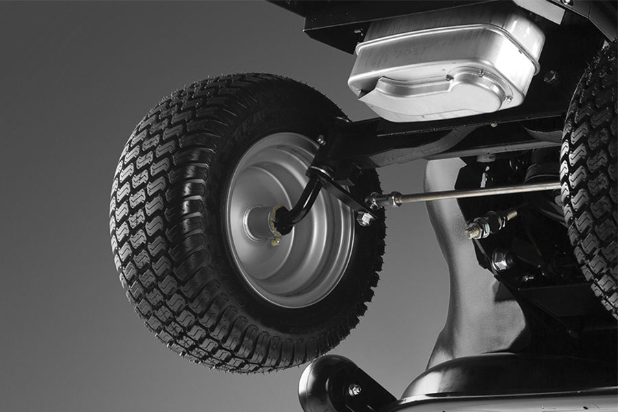 - Надежные шарикоподшипники закрытого типа предотвращают попадание влаги в передние колеса. Это большое преимущество перед стандартными моделями газонокосильных машин, где применяются втулки. Подобная конструкция увеличивает срок эксплуатации техники и уменьшает частоту проведения регулярных сервисных работ.