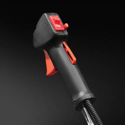Бензокоса оснащена эргономичной рукояткой велосипедного типа с системой универсального управления, которая позволяет контролировать число оборотов двигателя и исключает случайное нажатие на курок газа.