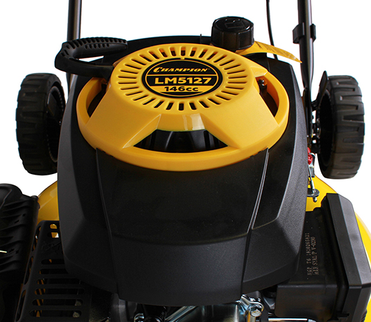 - Газонокосилка бензиновая Champion LM 5127 относится к несамоходному типу, ее передвижение осуществляется вручную.