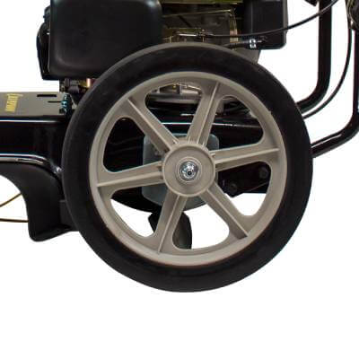 - Колесный триммер Champion LMH 5640 легко перемещать по неровным поверхностям благодаря большому диаметру задних колес. Колеса стоят на подшипниках, что существенно продлевает ресурс изделия.