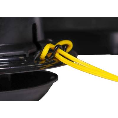 - Колесный триммер Champion LMH 5640 при работе может опираться на сферическую шпулю, выполненную из стали, в которую заправляется косильная струна.