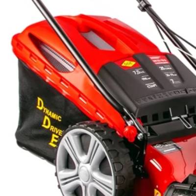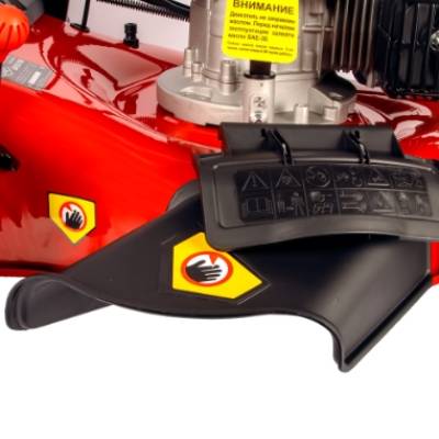 - Оснащена приводом на задние колеса, поэтому нет необходимости толкать косилку перед собой руками.