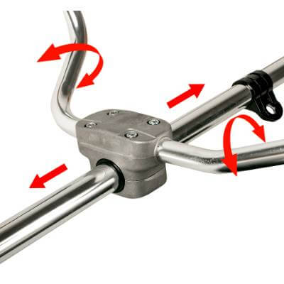 - Велосипедная рукоятка обеспечивает удобство удержания агрегата при работе и облегчает управление.