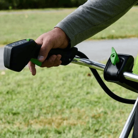 - Есть реверс для освобождения от намотавшейся травы. Велосипедная рукоятка оптимальна для кошения больших площадей. Триммер работает от аккумуляторной батареи 82V Commercial, которую можно использовать со всеми устройствами Greenworks из линейки техники 82 вольт.
