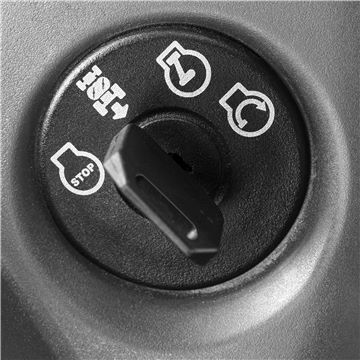 - Маневренность и легкость в управлении достигаются компактными формами машины и гидростатической трансмиссией, управляемой педалями.