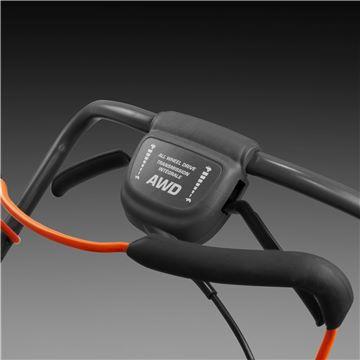 - Простота эксплуатации обеспечивается благодаря автозапуску, центральной регулировке высоты стрижки, а также легкодоступным и удобным элементами управления.