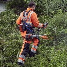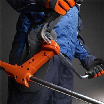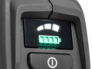 - Электрический двигатель E-TORQ запатентованной конструкции, эквивалентный по мощности бензиновому аналогу с объемом цилиндра 35 см3, и диаметр вылета корда 45 см обеспечивают высокий уровень производительности.