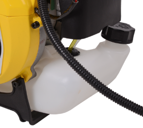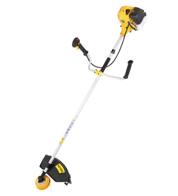 - Бензиновый триммер Huter GGT 2500S оборудован двухтактным двигателем (мощность 2.5 кВт, объём 52 см.куб) с электронным зажиганием, обеспечивающим быстрый, лёгкий запуск, и воздушным охлаждением. Для защиты спины от ожогов, цилиндр двигателя закрыт пластиковой термостойкой защитой. Топливный бак с максимальной вместительностью – 1.2 л, обеспечивает длительную работоспособность. Штанга бензокосы разборная – состоит из двух частей, для удобства транспортировки. Управление бензиновым триммером Huter GGT 2500S производится рукоятью велосипедного типа, удерживание – ранцевым ремнём.