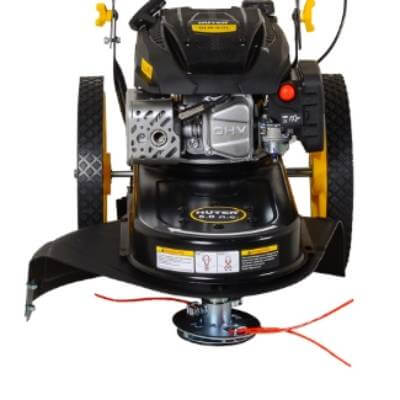 - При этом лесочная газонокосилка удобнее триммера на больших участках из-за отсутствия необходимости нести тяжёлое устройство на себе.