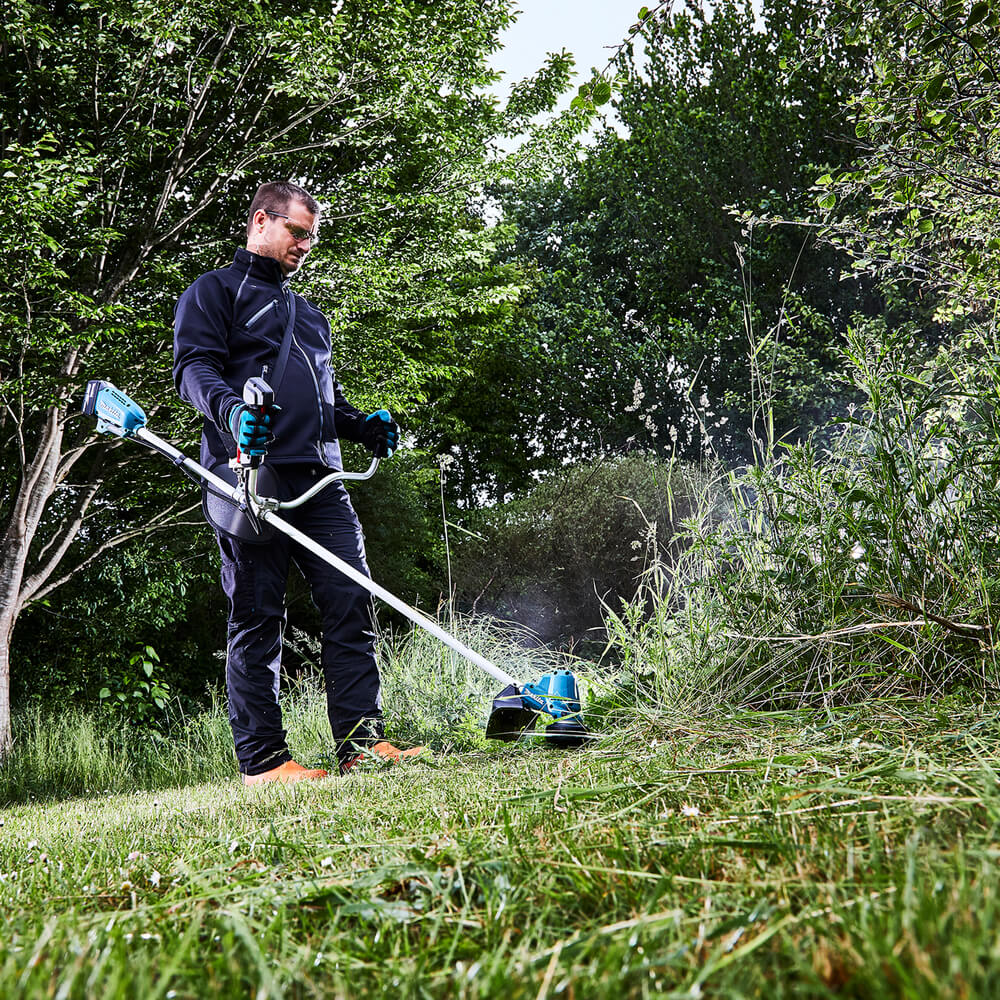 - Режим ADT считывает нагрузку с режущей поверхности и автоматически выбирает скорость кошения, что увеличивает продолжительность работы на одном заряде