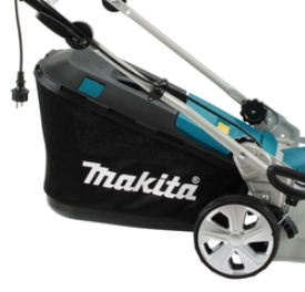 - Травосборник, рассчитанный на 50 л отходов, не требует частого опустошения. Также контейнер оснащен индикатором наполнения.
