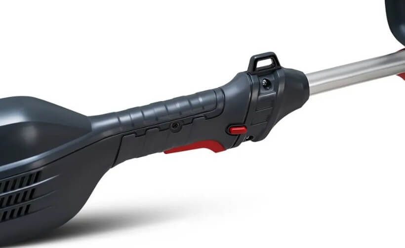 - На рукоятке управления предусмотрена кнопка блокировки выключателя во избежание случайного запуска.