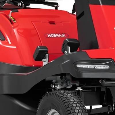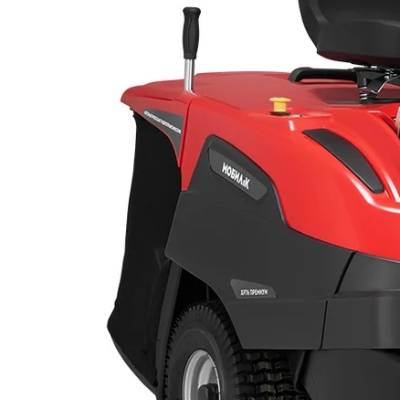 - Дека имеет штуцер для подключения шланга для автоматизации мойки внутренней поверхности деки. В деке, очищенной от налипшей травы, создается лучший воздушный поток, что существенно повышает эффективность сбора травы в травосборник (130 л).