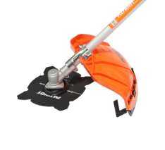 - В комплекте поставки — специальный 4х-лопастной нож для борьбы с зарослями борщевика и амброзии. Специальная конструкция ножа предотвращает разлет ядовитого сока и частей растений.