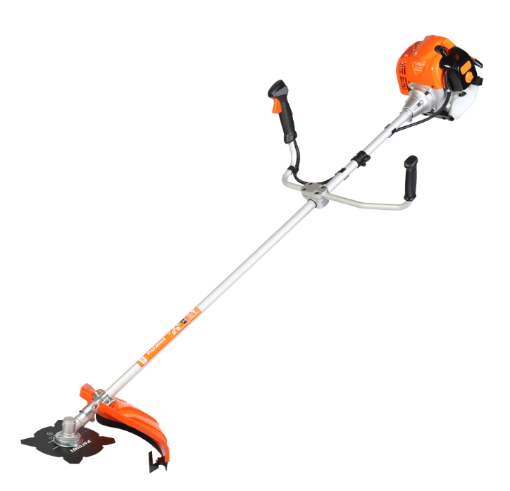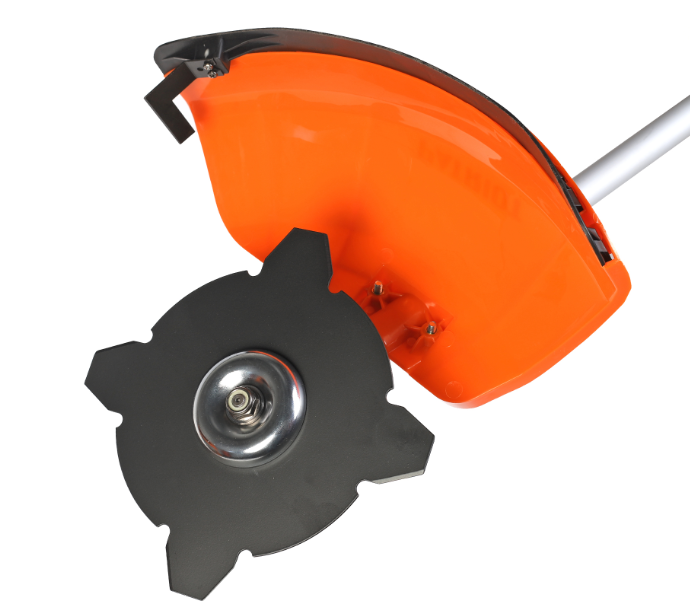 - В комплекте поставки — специальный 4х-лопастной нож для борьбы с зарослями борщевика и амброзии. Специальная конструкция ножа предотвращает разлет ядовитого сока и частей растений.