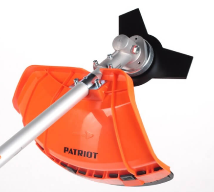 - При замене лески на режущий нож применяется для скашивания сухостоя, жестких сорняков и небольших кустарников.