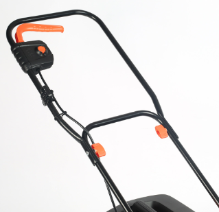 - Складная рукоятка, съёмный травосборник и компактный размер позволяют легко транспортировать и хранить газонокосилку.