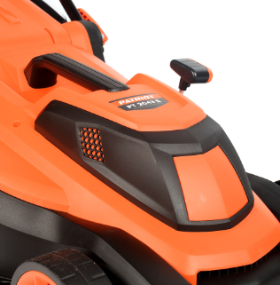 - Складная рукоятка, съёмный травосборник и компактный размер позволяют легко транспортировать и хранить газонокосилку.