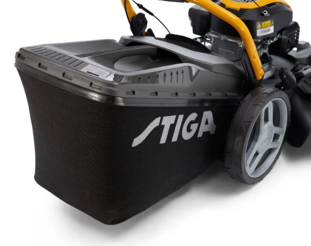 - Вместительный 60-литровый гибридный травосборник, оснащенный индикатором заполнения, позволяет производить длительное кошение без остановки для опустошения травосборника, а также уведомляет, когда травосборник заполняется до конца.