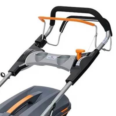 - Для удобства хранения рукоятку можно сложить, тем самым уменьшив габаритные размеры газонокосилки.