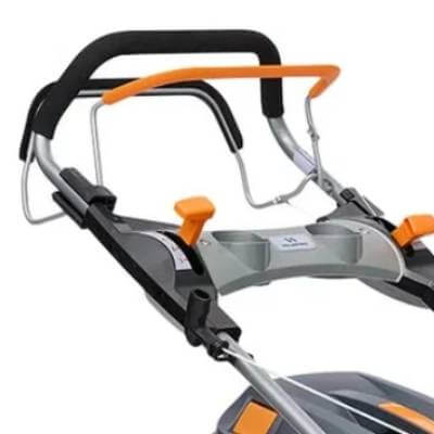 - Яркий, эффектный, оригинальный дизайн газонокосилки делает работу приятной.
