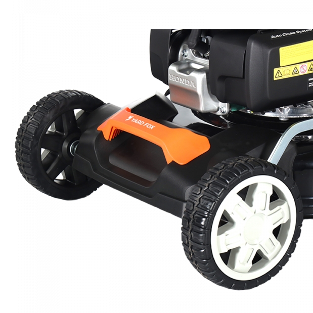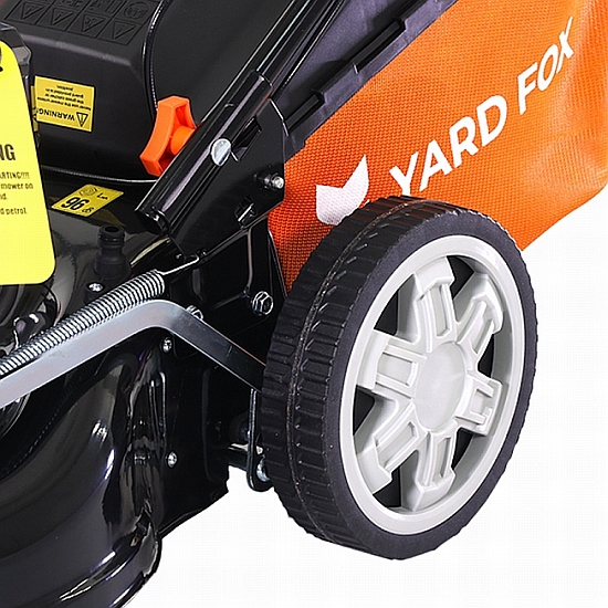 - Задние колеса увеличенного размера (25 см) делают косилку маневренной на ландшафтах с холмами.