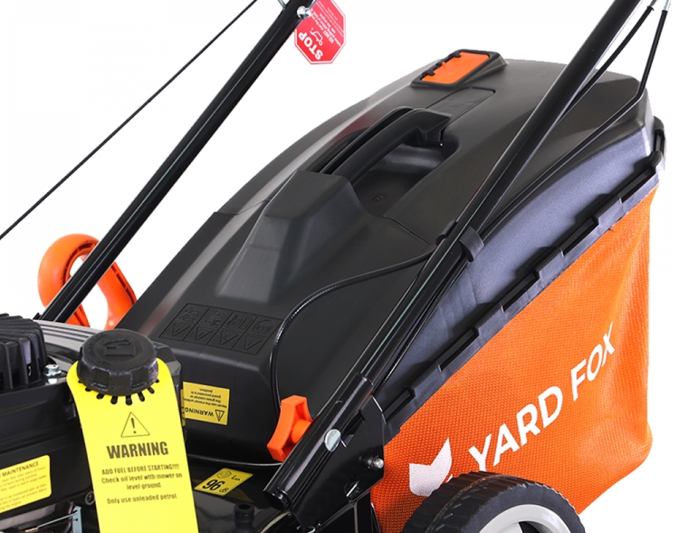 - Техника оснащается специальным индикатором, который оповещает о заполнении травосборника.