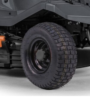 - Колеса со специальным протектором, не нарушающим поверхность газона.